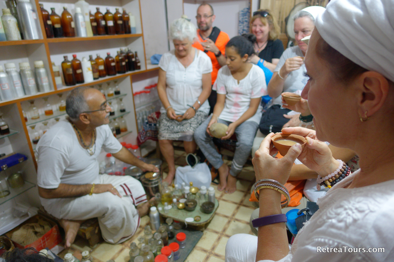 Rose front and center at the oil shop in Benares, India. I got seven oils and one free one. They were all lovely.