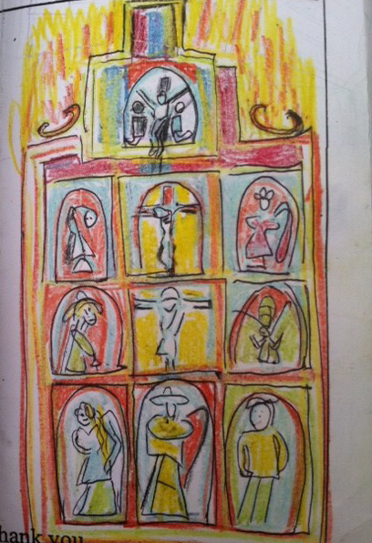 My interpretation of a painting I saw in the Catholic Church in Antigua. The singing there was Devine in and of itself.