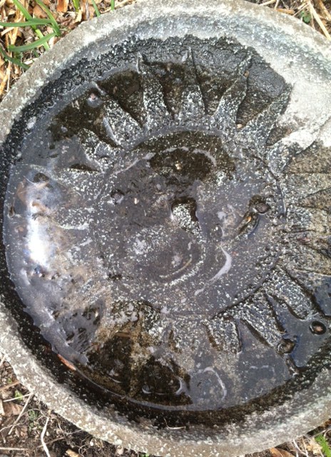 Some water and ice in the bird baths