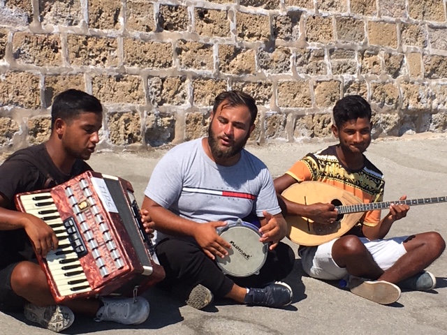 They met some friends, they met some family, and all was very happy. The music was very lovely. One of the singers finished a few songs by dropping to the ground and playing her instrument lying down. Everyone laughed heartily. Mariah missed the leaps on to the ground, as she was busy grinding down the chalk for a picture of the musicians.