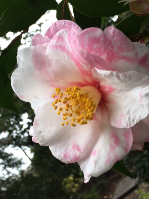 As I sat over the goldfish pond, and opened my eyes, I was looking at two trees, covered in blooms, one of red and one of pink. And flying among the blooms was a very small hummingbird, with my eyes just catching the glitter of its green and red coloring. I was very surprised as it was into the third week in December and this little bird had not gone south yet. Perhaps the many blooms were delaying the bird. Maybe it stayed to help with meditators in the garden.