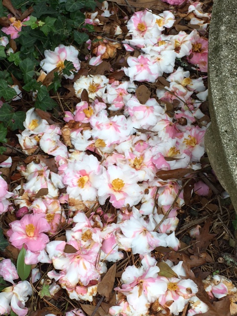 I had a beautiful silent time and as I finished up with taking pictures of the blooms, I saw a middle aged woman walk up the path nearby to another building. She was dressed in a smart black coat and long black boots. Her hair was cut in a short boyish cut with a smart fringe falling over her forehead.