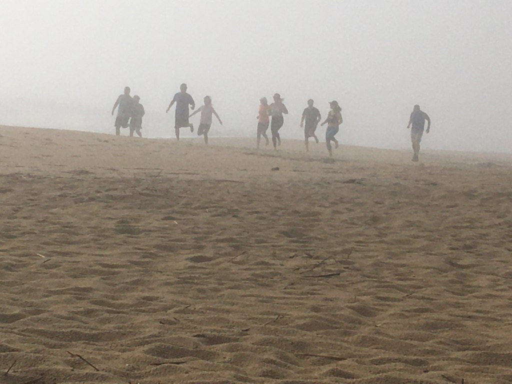 As I sat the clouds became a fog that came and surrounded me on my little perch on the edge of the ocean. The birds, the people and dogs were surreal. When the lab dog’s owner came back up he stopped again and commented on the fog as my face got another licking. He noted that he took videos of the fog, as no one would believe what he had seen. He said it had a mystic quality and the sun looked as the moon.