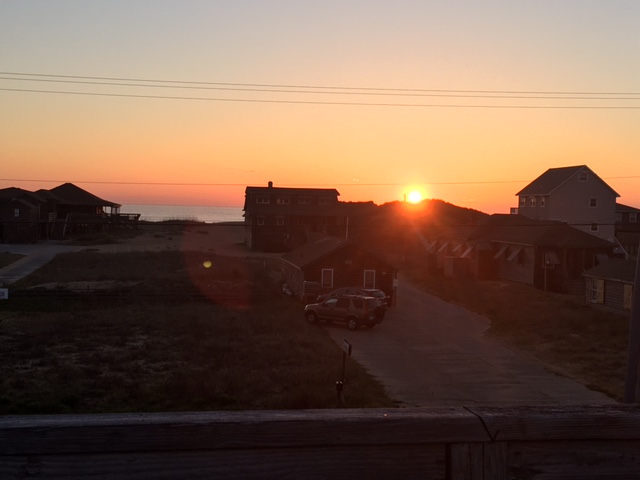 This morning I was at the ocean front at daybreak. There was a line of what looked like clouds and I did not see any rising sun but could see that light change in a warm way. I stood there for a while and sat cross-legged afterwards. My feet were bare and cold so I immersed them in the sand. It had a warming effect. Then I tried meditating. A large black lab came up and slobbered all over my face. His owner, a youngish man said his dog thinks everyone is his friend.