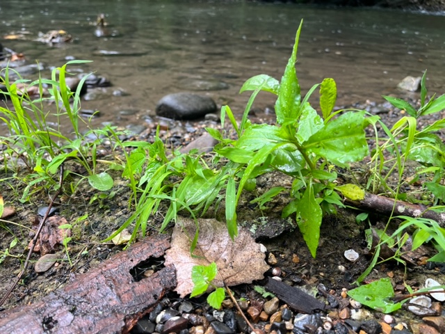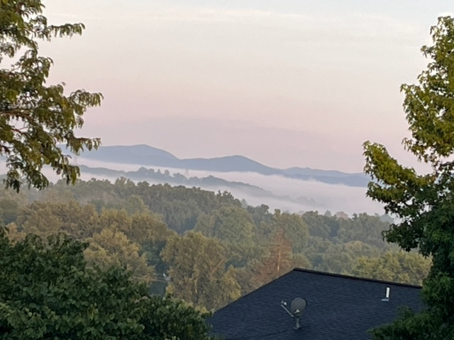 The lovely river flows through the small town I live above. I can see how it flows by the ribbon of fog that is often over it in the mornings. I feel compelled to go there at least once a day, especially in this hot weather, often in the nineties.