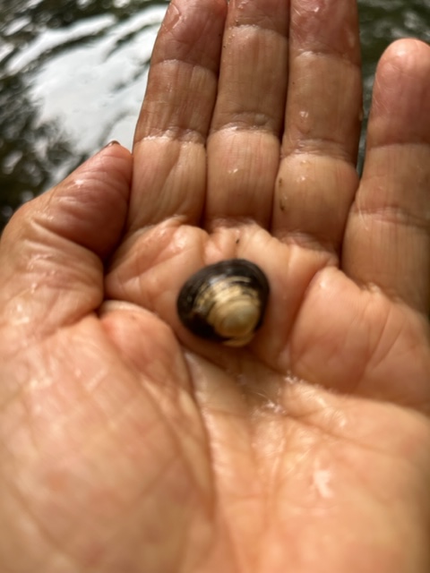 Here I am skipping church, spending the time at a watering hole in Stokesville and getting cold and hot, sun and water, four or five times before lolloping home again. There was a family fishing and I could see some 8 inch fish in the water. There was an 80’s plus person sitting in a tube enjoying the water with extended family. It turned out I knew her sister and niece and had spent a day with them in the Rawley Springs river ten years ago.