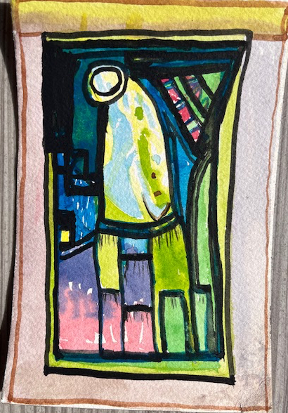 I painted a card and found words about new beginnings and sent blessings.I placed it on her pillow with the card so she would get it later. The young mother involved was delighted. She showed it to the father-to-be and they came and surrounded me in the kitchen, where they found me and their arms encircled me and I felt this great new beginning gives me a singing in my vibrations and I was filled with shivers as they walked away together. This New Beginning has found a way to include me.