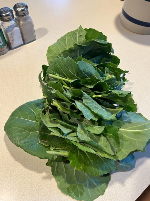 In August, my green thumbed partner planted greens, at my request. We went to the local store and the only greens left, of which I got five different varieties, included endive, collards, turnip and two kale varieties. They all came up with some September rain with gay abandon and I have had greens on my plate almost every day since then. I also got about fifteen kale plants from a client who generously was thinning her own and gave me the extra bounty. They all survive too.